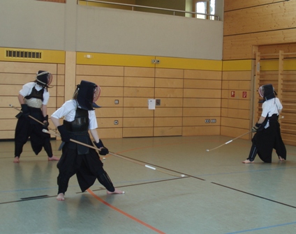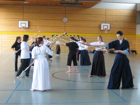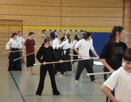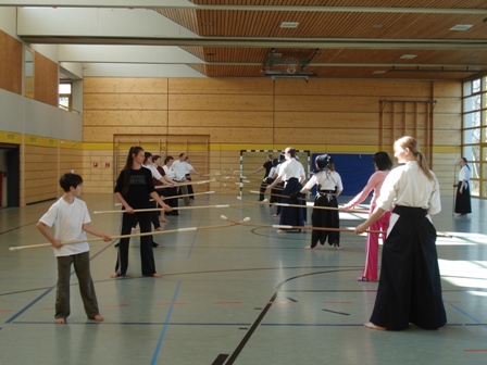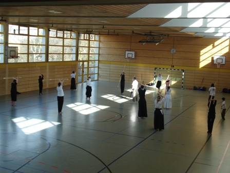 Nach Stationen in Berlin und Lübeck fand das sechste Einsteigerseminar des DNagB am 23. und 24. Februar wieder einmal in Mainz statt. Mit 21 Teilnehmer aus 5 Städten war es der bisher größte Lehrgang dieser Reihe. Viele neue Interessierte kamen, insbesondere aus Hessen und Bayer, um an diesem frühlinghaften Wochenende das „Schwert am Stiel“ zu schwingen. Trotz des behutsamen Tempos des Seminars waren die Teilnehmer sowohl geistig als auch körperlich gefordert, die ungewohnten Naginata-Bewegungen mit ihren vielen Handwechseln aus dem charakteristischen seitlichen Stand zu erlernen. Neben Themen wie Fußarbeit und Grundschläge stand auch die Wartung der Ausrüstung aus dem Programm. Darüber hinaus gab es auch dieses Mal wieder eine kleine separate Trainingsgruppe für eifrige Rüstungsanfänger. Vielen Dank an den Polizeisportverein Mainz für die gute Organisation. Bis zum nächsten Mal – vielleicht im Süden der Republik?