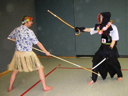 Aller guten Dinge sind drei: Seit Februar 2007 gibt es Naginata in Leverkusen. Der fünften Jahreszeit angemessen begingen wir dieses Jubiläum mit einem Jeckentraining. Achtung: Schönes Naginata sieht anders aus! Was hier folgt entspricht 100% nicht unserem normalen Training.