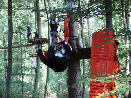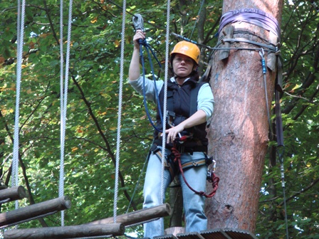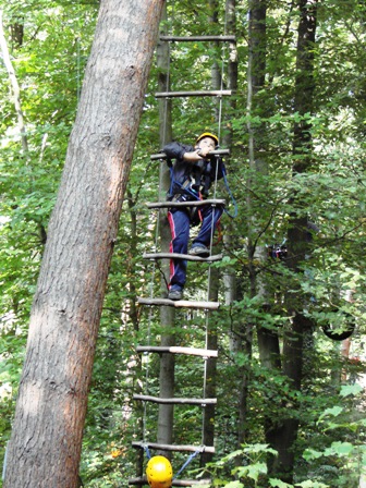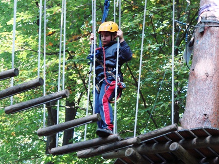 Grundsätzlich besteht jeder Parcours aus mehreren Plattformen auf Bäumen, zwischen denen sich die Kletterelemente befinden. Nach einem recht einfachen Einstiegsparcour, durften wir „Baumwipfelstürmer“ den Kletterwald auf eigene Faust erkunden. Die Parcours bieten, neben verschiedenen Höhen, unterschiedliche Schwierigkeitsgrade, sodass letztlich für jeden etwas dabei war. Ich spreche sicherlich nicht nur für mich, wenn ich sage: Auch ein zweiter oder dritter Besuch im Kletterwald wird sich lohnen!