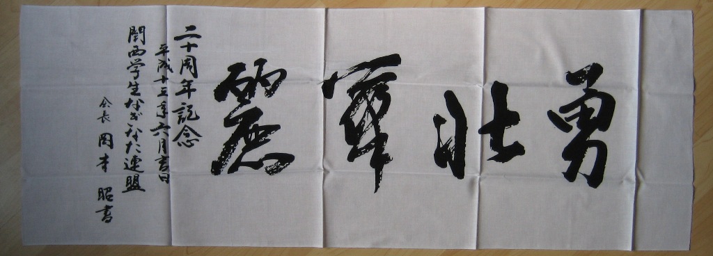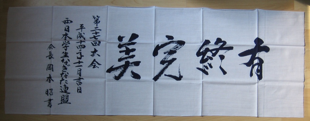 Hier die versprochenen Übersetzungen der Tenugui, die Yamaô Sensei vom Ôsaka-Naginataverband gestiftet hat: